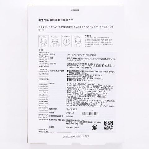 | 仕 様 | ・5枚入り×30g ・韓国製 当店は、正規代理店から仕入をした正規品を販売してます。 ※肌に合うか心配な方は、パッチテストなどでお試しの上、ご使用を開始してください。 ※使用上の注意をよく読み、お使いください。肌に合わないときは、ご使用をおやめください。 【返品(お客様都合)について】 こちらの商品は商品の特性上、返品を受け付けておりません。予めご了承ください。 |