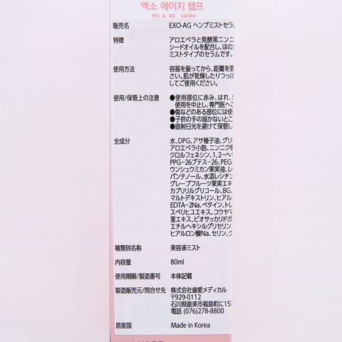 【送料無料】 LARA CLARA EXO-AG HEMP MIST SERUM ララクララ ヘンプミストセラム 80ml