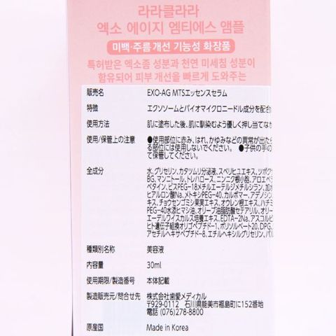 【送料無料】 LARA CLARA EXO-AG エッセンスセラム 30mlシリーズ MTS ララクララ エキソエイジエムティエスアンプル