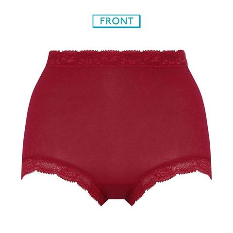 肌側パイル編みのレースはソフトな肌ざわり。ウエストはレースが直接肌に当たらない設計で、肌に優しい仕様です。モダンなリーフ柄のオリジナルレースがおしゃれ。