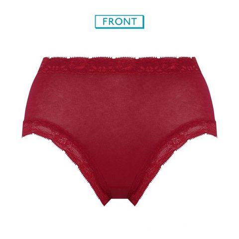 肌側パイル編みのレースはソフトな肌ざわり。ウエストはレースが直接肌に当たらない設計で、肌に優しい仕様です。モダンなリーフ柄のオリジナルレースがおしゃれ。