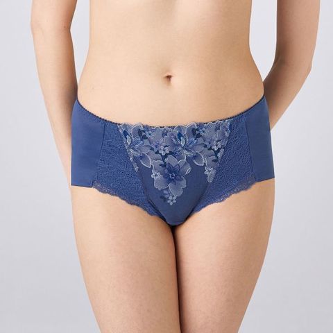 はき込みは浅く、脚口はフロントがレース、後ろは一枚仕立てのデザインです。