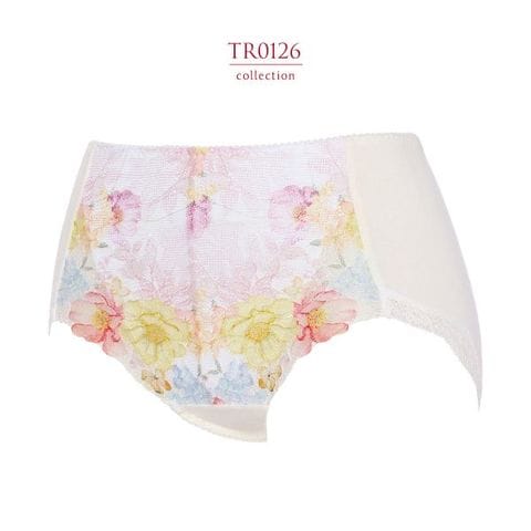 TR0126シリーズは、ガーベラやネモフィラが鮮やかに咲き誇る、トリンプ プレミアムデザイン。鮮やかな花々のプリントレースを贅沢に使用した、特別感あふれるフェミニンなシリーズです。