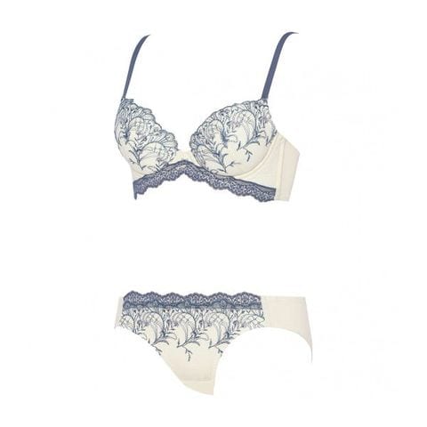 「脇高設計」でシルエットを美しく整える、着痩せと谷間メイクを両立したブラ&ショーツセット。クラシカルなアーチと小ぶりなブーケを組み合わせた愛らしい刺繍レースが、日常に華やかさを添えるデザインです。