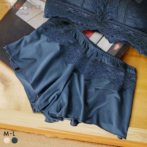 リラックス感あふれるコンフォートショーツ。華やかなレースとクラシカル調の編みレースをミックスした大人かわいいデザインです。