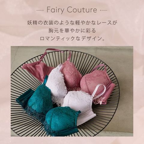デザインは、妖精の衣装のような軽やかな編みレースとケミカルレースを使用したロマンチックな仕上がり。ストラップずれを防ぐ「デルタマジック」機能付きです。