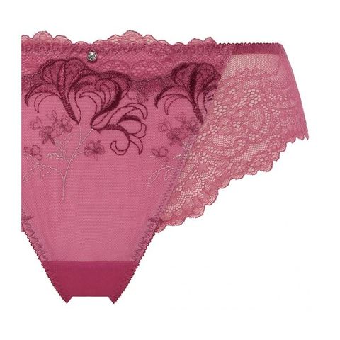 ヒップの包み込みがほどよく浅く、ストリングタイプよりくいこみにくいため、華奢なショーツに初挑戦したい方にもおすすめ。ヒップ全体が総ストレッチレースで肌になじみ、体の動きに優しくフィットします。