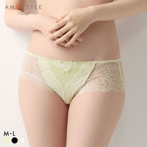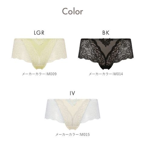 はきこみが浅いタイプなので、トレンドのボトムスからも見えにくく安心。サイドからバックにかけてレース1枚仕立てにすることで、後ろ姿もフェミニンに彩ります。