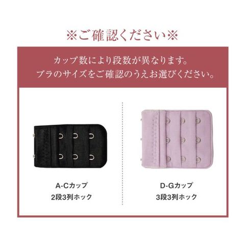 サイズ 2段ホック(A70、A75、B65、B70、B75、C65、C70、C75、C80)