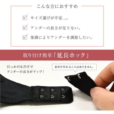 アンダーの長さが足りない方はもちろん、サイズ選びが不安、体調によりサイズを調整したい方にもオススメ☆