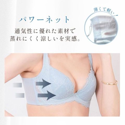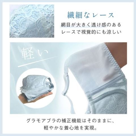 消臭効果付きの素材を採用し、汗やニオイのお悩みに対応。グラモアブラの高い補整感と着心地はそのままに、軽く、薄く、蒸れにくい仕様を実現しました。