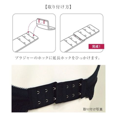 フェザーライクブラ用 延長ホックです。お気に入りのフェザーライクブラのアンダーがきついと感じる時や、体調によってサイズを調整したい時に便利な延長ホックです。