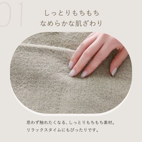 思わず触れたくなるしっとりもちもちの生地は、ふんわり毛羽立てたナイロンモール糸と、ソフトで伸縮性に優れたウーリーナイロン糸を高密度で編み立てた贅沢な質感。とろけるような心地良い肌当たりで包み込みます。