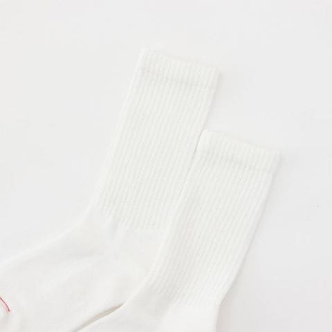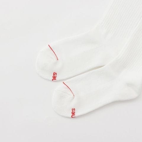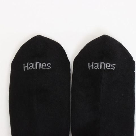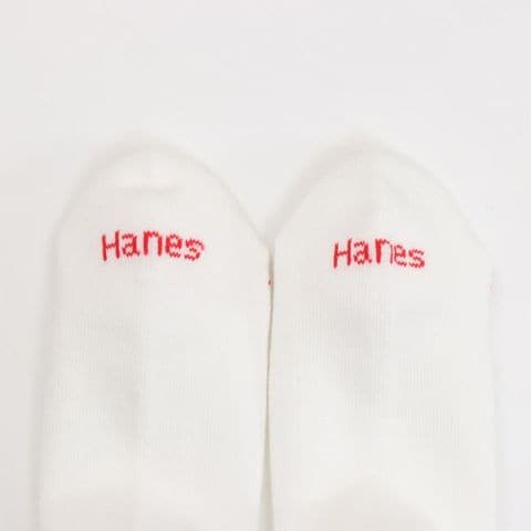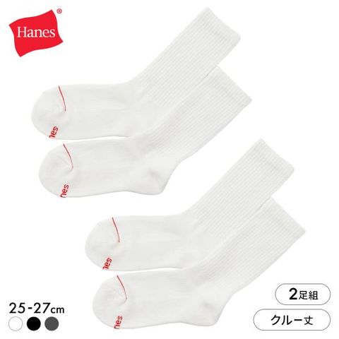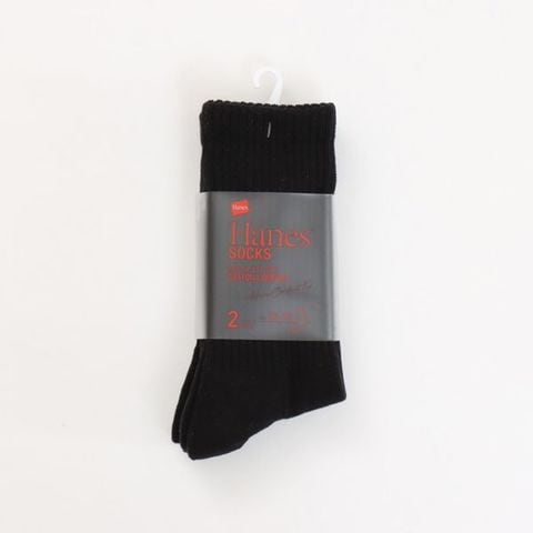 2足組クルー丈ハーフパイル仕様のソックスです。履き口部分が締め付けにくく、柔らかい着用感が特長のリブ編み設計のソックスです。つま先にラインのアクセント、足裏にさり気なくアクセントカラーでHanesR(ヘインズ)ロゴを入れました。