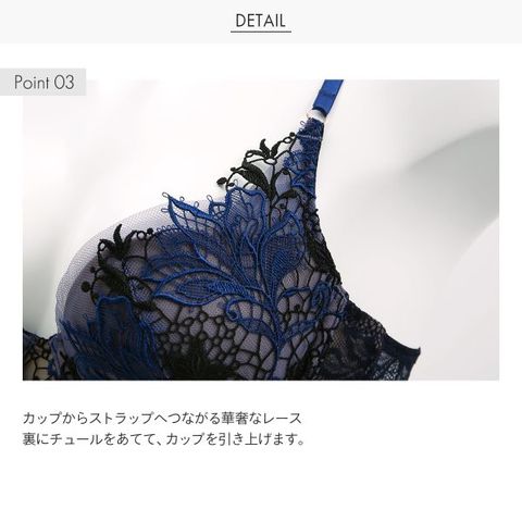 手の込んだ しっかりしたステッチのレースが醸し出す、高級感と洗練された雰囲気は、上質な物を身に着けたいという女性の願いを満たしてくれる。