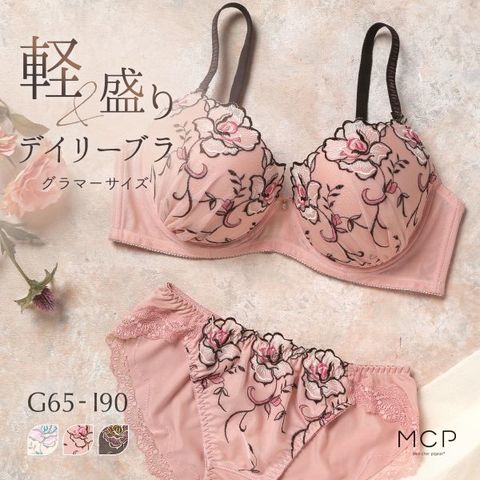 ブラジャー ショーツ セット グラマー GHI 大きいサイズ 谷間キープ 軽い らくちん モンシェルピジョン Tea Rose Mon cher pigeon