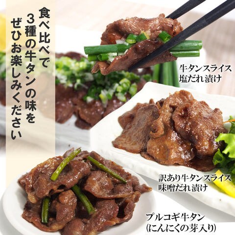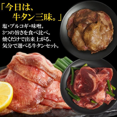 牛タン 3種 食べ比べ セット 計1.2kg 塩だれ 味噌だれ プルコギ バーベキューセット 焼肉セット メガ盛 牛肉 肉 食品 にく 訳あり 焼肉特集 北海道沖縄配送は別途送料追加