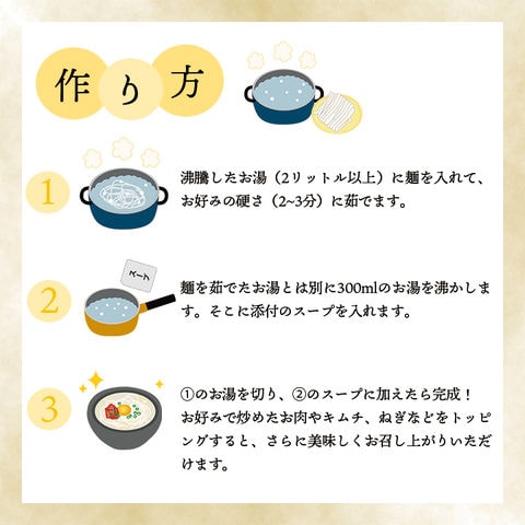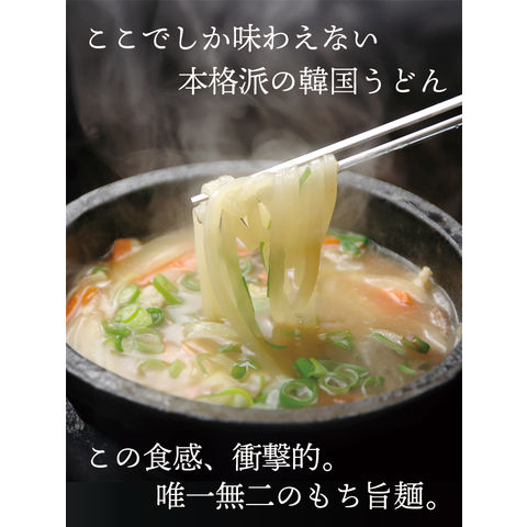 当店オリジナル開発品の塩カルビスープに、杵打ち風の太いうどんをセットにしています。煮込んでもコシのあるうどんは、スープの味をしっかりと染み込ませてお楽しみ下さい。トッピングに白菜キムチや焼豚などを添えると、より一層美味しく召し上がれます。