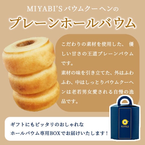 MIYABI'S バウムクーヘン 【プレーンバウム】 やさしい自然な甘さ、ふわふわしっとり食感のバームクーヘン 【ギフト・贈答用にもおすすめ】 常温便 1002