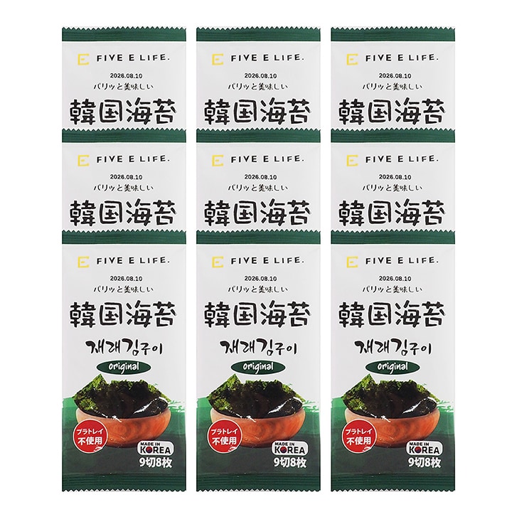 韓国海苔 9切8枚×9袋 プラスチックトレイを使わない、地球にやさしい韓国のり 常温・冷蔵便可/海苔 韓国海苔 韓国のり 韓国味付け海苔 味付のり 韓国グルメ
