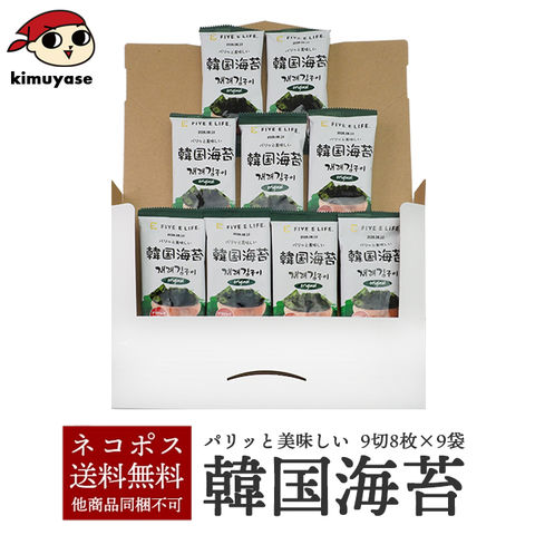 韓国海苔 9切8枚×9袋 メール便 送料無料 同梱不可 代引き不可 日時指定不可 簡易包装 海苔 韓国のり 韓国味付け海苔 味付のり 韓国グルメ お試し