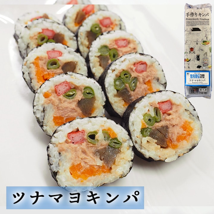 たっぷりツナとシャキシャキ野菜のバランスが良いキンパです。 酢飯を使わず作っているためお米がべちゃっとせず、味付けはもちろん見た目も満足できる本場のキンパです! 冷凍のままレンジでチンする簡単調理!
