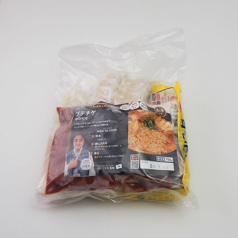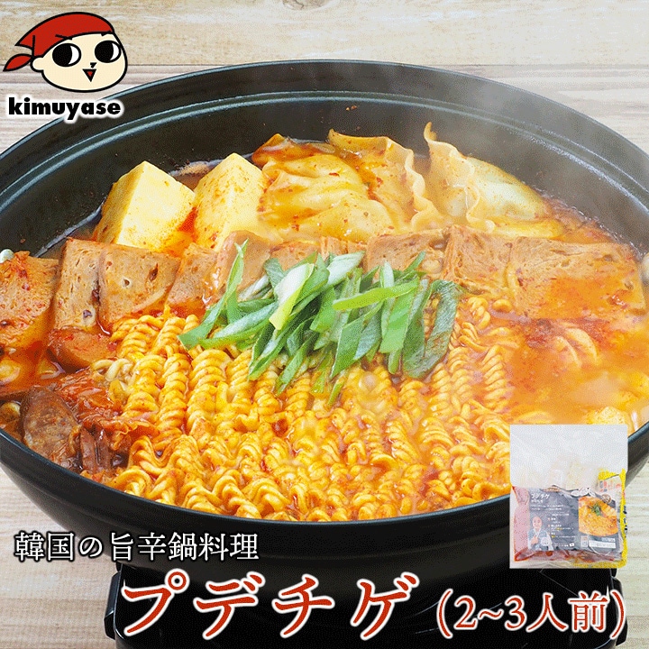 豆腐(国内製造)、白菜キムチ、スパム、即席中華めん、餃子、ウインナーソーセージ、トック(餅)、牛豚合挽肉、玉ねぎ、唐辛子パウダー、醤油、食塩、ごま油、植物油、ねぎ、にんにく、アミの塩辛、牛肉エキス、砂糖/加工デンプン、発色剤(亜硝酸Na)、増粘剤(キサンタンガム、加工デンプン)、ソルビトール、卵殻カルシウム、かんすい、着色料(V.B₁、コチニール)、調味料(アミノ酸等)、凝固剤(塩化マグネシウム)、消泡剤(グリセリン脂肪酸エステル)、炭酸Ca、レシチン、pH調整剤、リン酸塩(Na)、カゼインNa、保存料(ソルビン酸K)、酸化防止剤(V.C)、酸味料、香料、(一部に小麦・卵・乳成分・えびを含む)