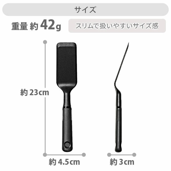 角度がついているので、食材の下にすっと差し込みやすく、スリムで扱いやすいサイズ感です。