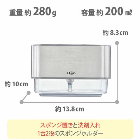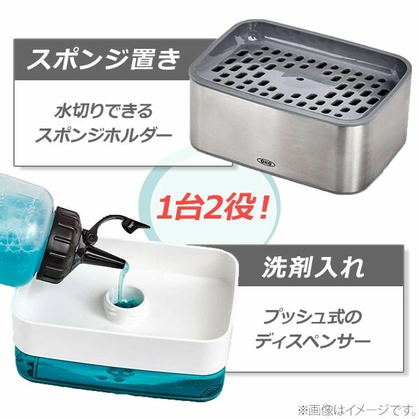 OXO オクソー スポンジホルダー(ソープディスペンサー付) 12246400 スポンジ 洗剤入れ 詰め替えボトル スポンジ置き ディスペンサー スポンジ入れ スポンジトレー スポンジラック