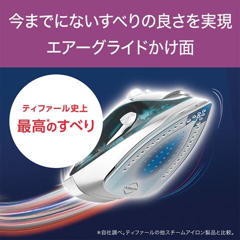 ティファール史上最高のすべり、Newエアグライド。最大約75g/分のパワフルジェットスチーム。自動安全停止機能を搭載。