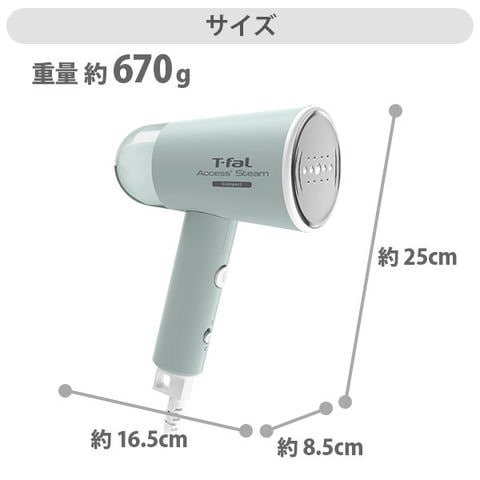 T-FAL ティファール アクセススチーム コンパクト ミントグリーン DT1034J0 衣類スチーマー スチームアイロン ハンガーにかけたまま