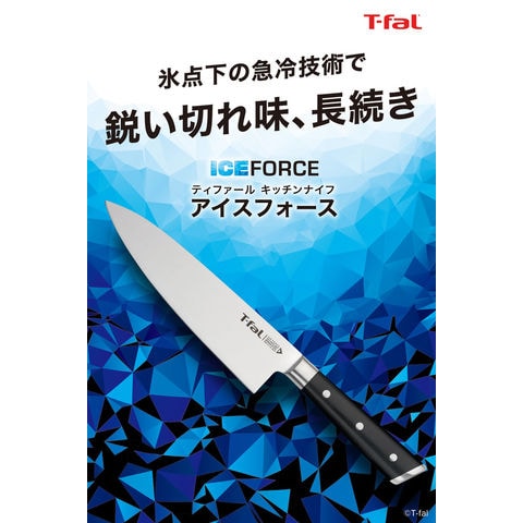 ティファールの卓越したテクノロジーを集結し、切れ味と耐久性に優れた、アイスフォースナイフの誕生。氷点下の急冷技術で、鋭い切れ味長続き。シェフナイフは、肉や魚など大きな食材のカットに向いています。