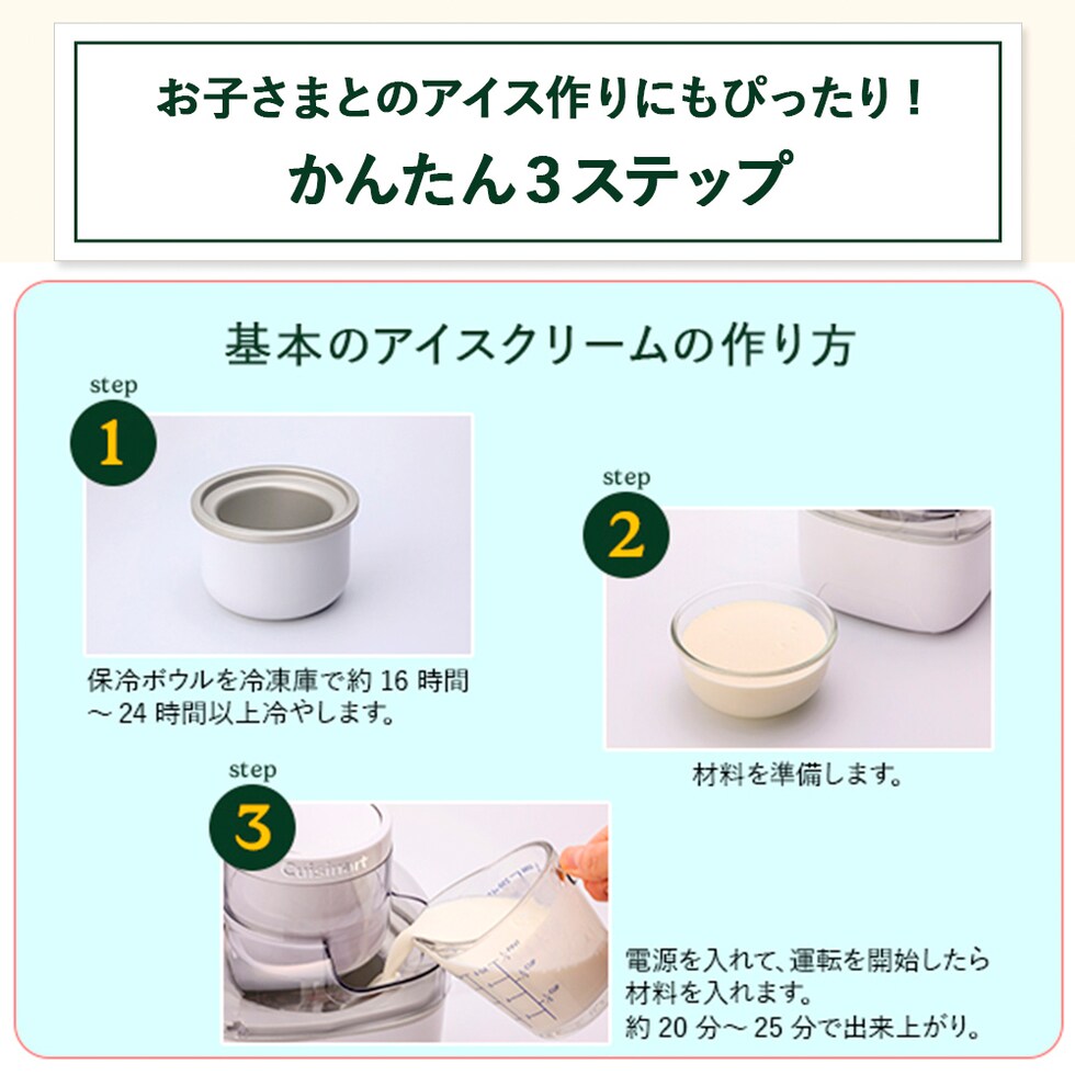 クイジナート「アイスクリームメーカー」は、お好みのフレイバーでアイスクリーム作りが家庭で手軽に楽しめます。