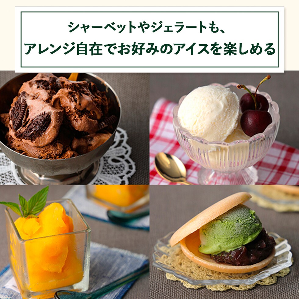 定番のバニラからラムレーズンやシャーベットなど、家庭で手軽に作れるオリジナルレシピを載せた専用レシピが付属。