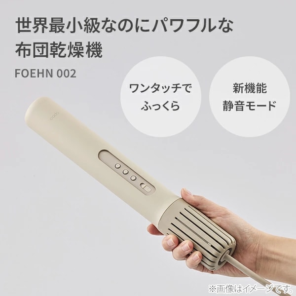 静音モードが追加され、更に使いやすくなった「ふとん乾燥機 FOEHN 002」です。FOEHNのパワフルな風はふとんをあたため、乾燥させながら、ニオイやダニまでも対策。あなたに心地よい眠りと目覚めをもたらします。