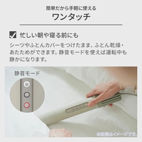 あわただしい朝もワンタッチで、帰宅するころには自動で消臭・ダニ対策が完了します。快適に寝たい夜もワンタッチで、ふとんに挿し込むだけでふっくらさらさらの仕上がりです。