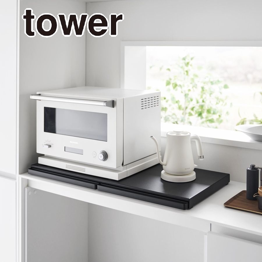 tower キッチン家電下スライドテーブル W80 ブラック 1685 送料無料 レンジ下 家電下 作業スペース