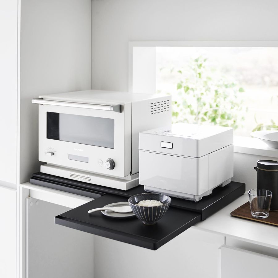 ワイドな天板には、電子レンジと炊飯器を並べて置けます。