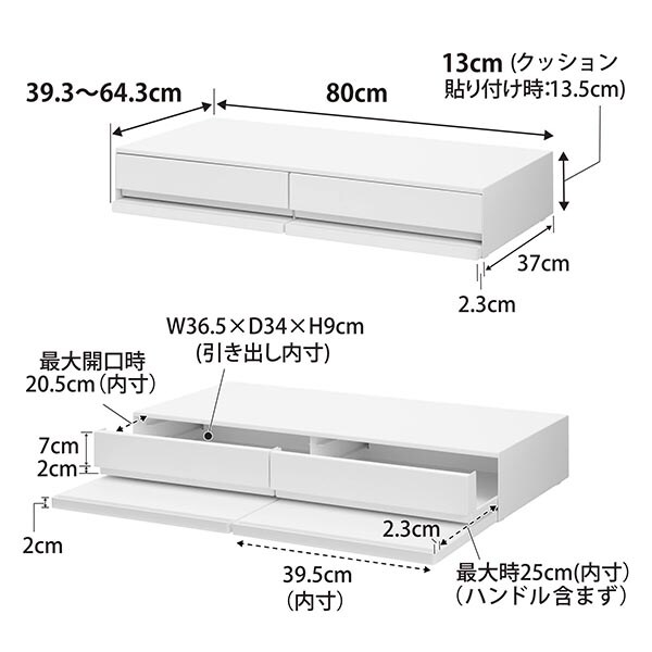 | 商品サイズ | W80×D39.3~64.3×H13.5cm |
