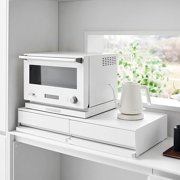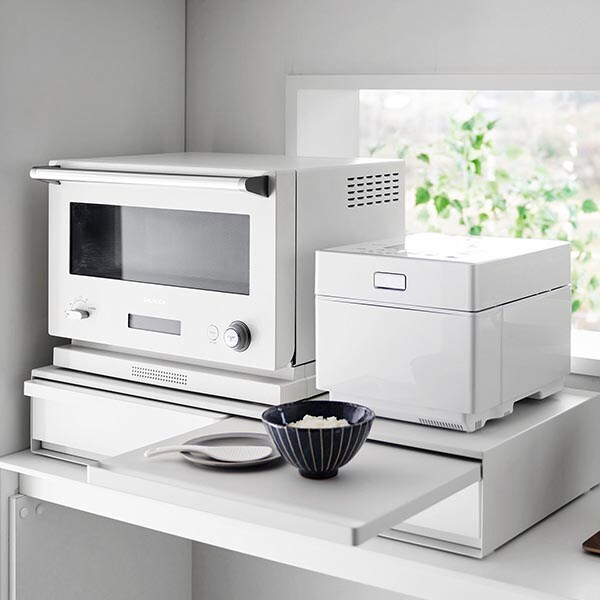 ワイドな天板には、電子レンジと炊飯器を並べて置けます。