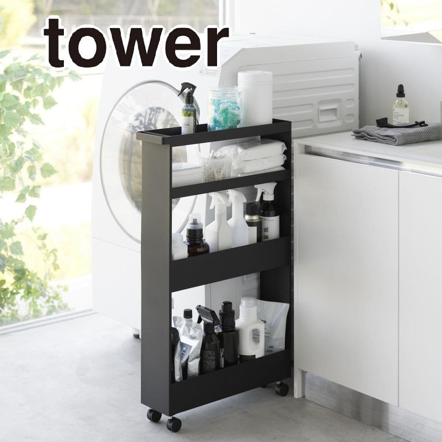 tower キャスター付きスリムワゴン 4段 ブラック 1807 山崎実業 送料無料