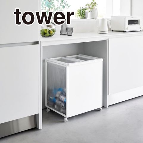 tower 目隠し分別ダストワゴン タワー 45L 2分別 ホワイト 1824 送料無料 ゴミ箱 ごみ箱 分別 キャスター付き ハンドル付き ストック収納