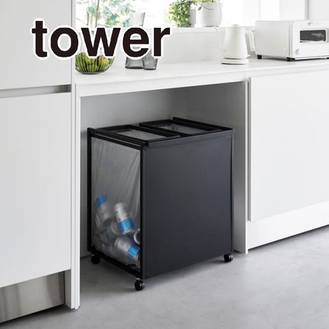 tower 目隠し分別ダストワゴン タワー 45L 2分別 ブラック 1825 送料無料 ゴミ箱 ごみ箱 分別 キャスター付き ハンドル付き ストック収納