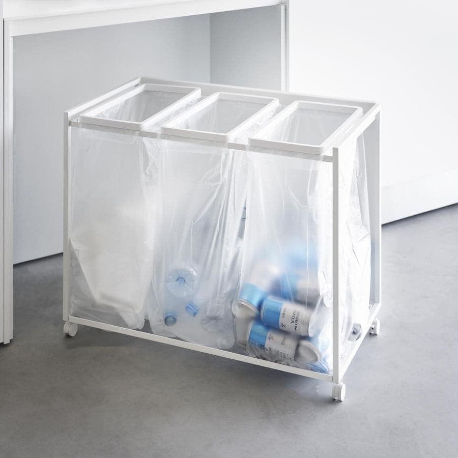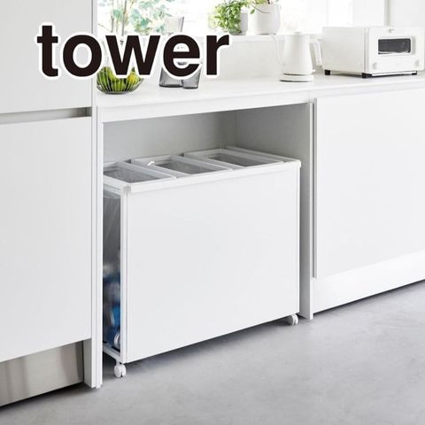 tower 目隠し分別ダストワゴン タワー 45L 3分別 ホワイト 1826 送料無料 ゴミ箱 ごみ箱 分別 キャスター付き ハンドル付き ストック収納