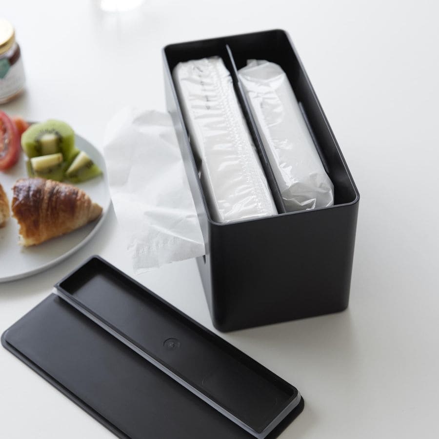 TOWER 両面コンパクトティッシュ&ウェットシートケース ブラック 2041 シンプル コンパクト 省スペース