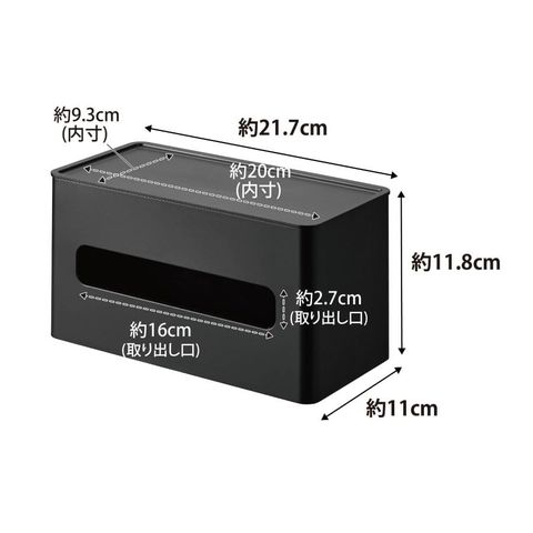 ソフトパックティッシュ収納部:約W21×D5×H10.8cm ウェットシート収納部:約W16.5×D4×H10.8cm トレー部:約W20×D9.3cm ティッシュ取り出し口:約W16×H2.7cm ウェットシート取り出し口:約W5×H4cm |