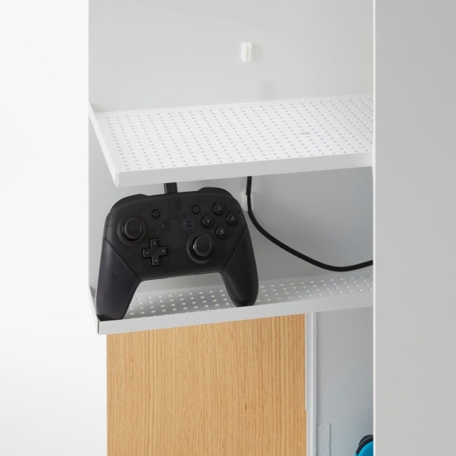 ●棚の下段には、小型の据え置きゲーム機やコントローラーを縦置き収納できます。