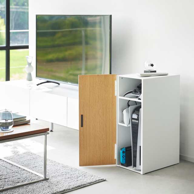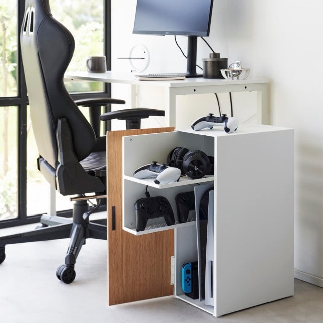 リビングやデスクまわりで雑然としがちなゲーム機やコントローラーなどを、隠しながら美しく収納できる大容量ラック
