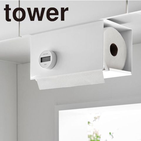 tower 山崎実業 キッチンペーパー ペーパーホルダー 3008 送料無料 片手でカット戸棚下キッチンペーパーホルダー カバー付き L ホワイト 片手でカット 補充も簡単 しっかり固定
