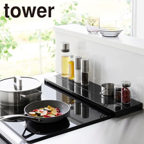 tower 山崎実業 排気口カバー 4563 送料無料 奥行伸縮排気口カバー 60cmコンロ用 ブラック コンロ周り 汚れ防止 水洗い可能 伸縮性